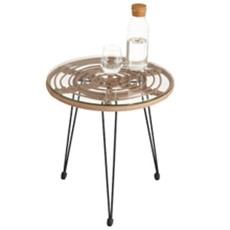 The tabletop is made of safety glass, is round, and has a diameter of about 51 centimeters.